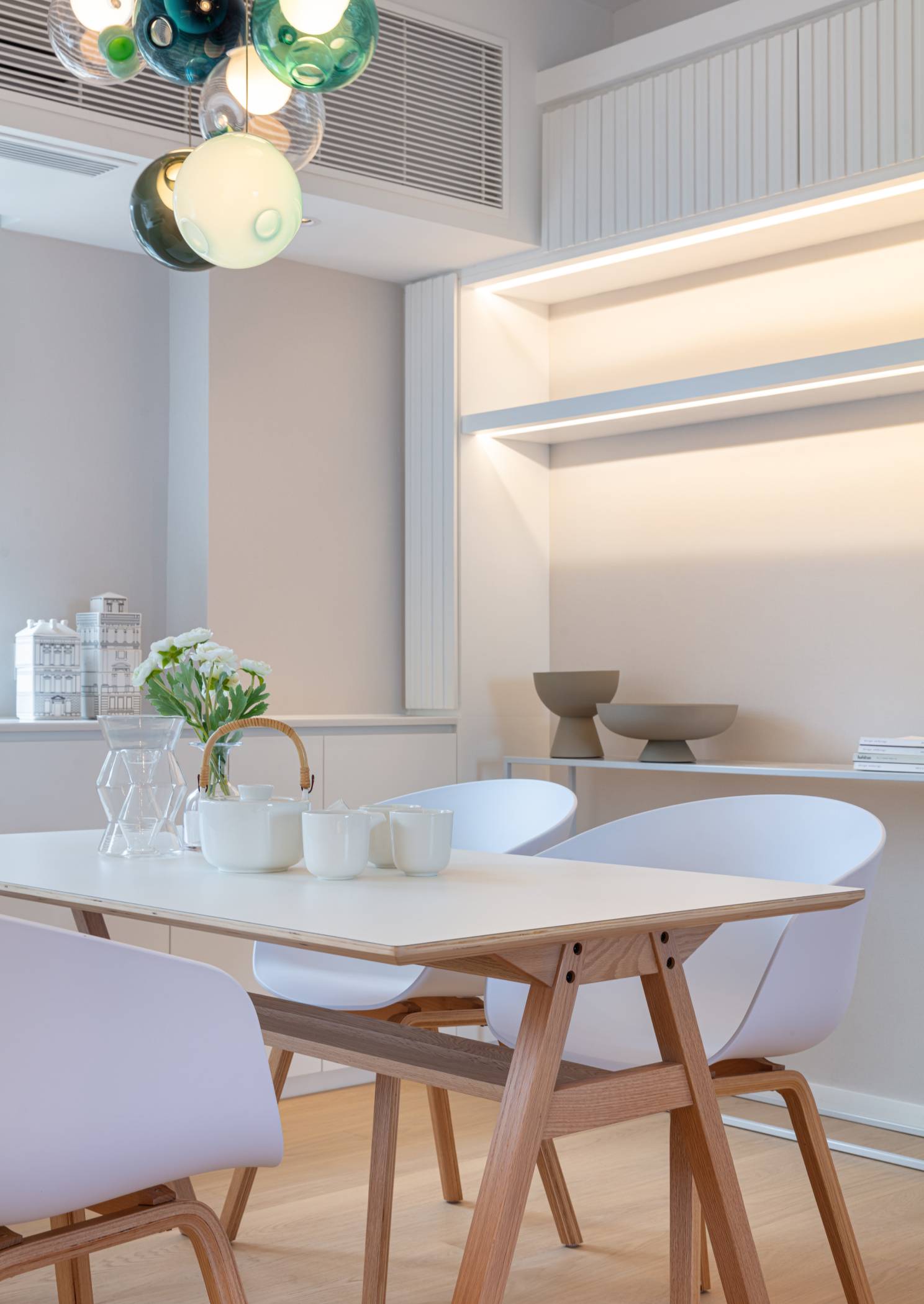 为了打造他们的城市避难所,客户要求我们用现代简约的全白色调色板设计公寓。 白色不会出错。 它突出了纹理,增强了自然光,放大了独特的设计特征,并引起了人们对房间线条和形状的注意。 通过简化空间而不使其沉闷,白色使其他一切看起来更好。