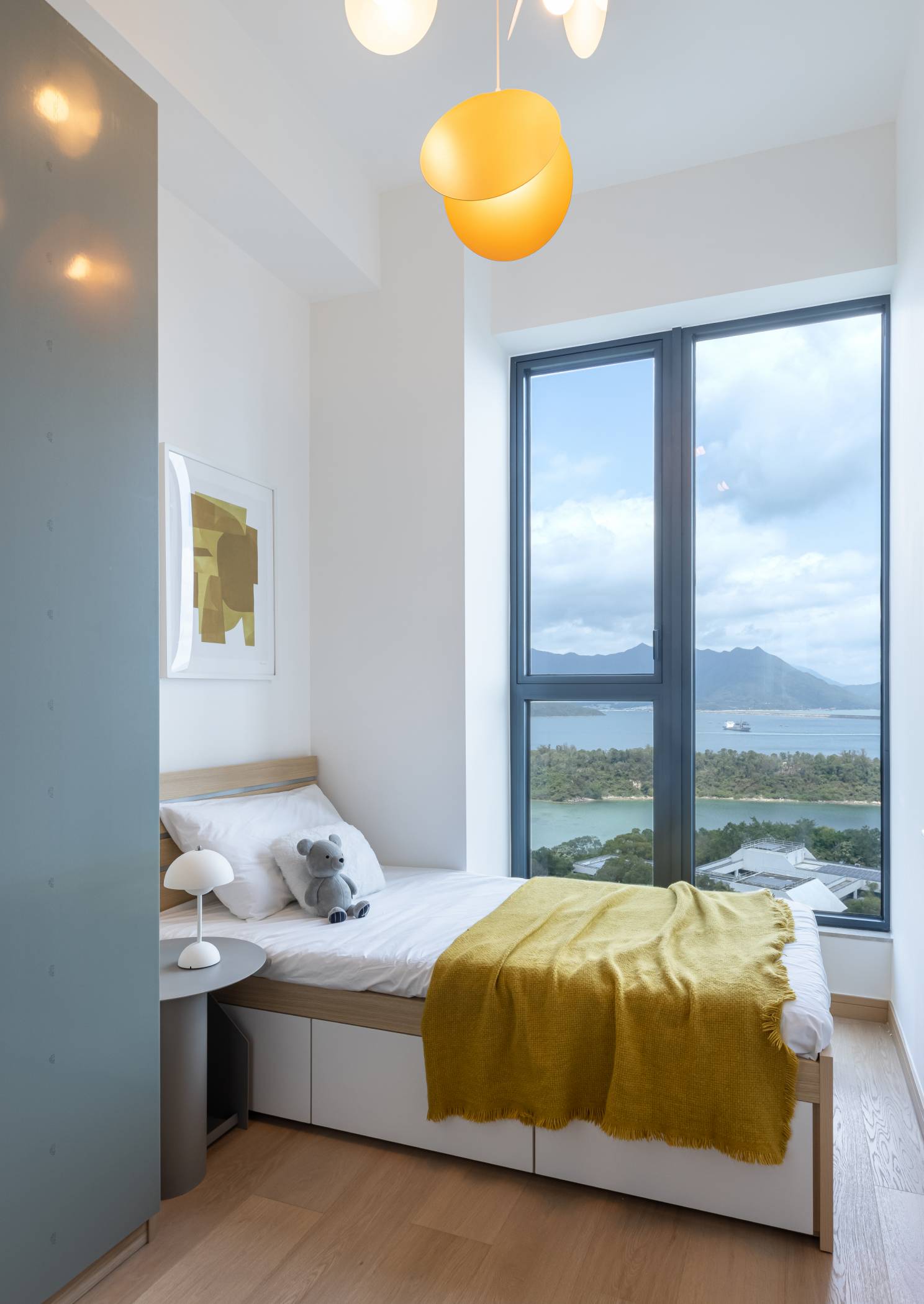 設計師度身為一家三口溫馨小家庭設計出一個富現代感的居住空間。為了讓戶主有更多親子時間,設計師特意將客廳一部分規劃為小朋友的小天地,既提供不少儲物空間放置玩具及家居雜物,也可以培養小朋友收拾東西的習慣。另外,設計師以條子屏風分隔廚房及客飯廳,將陽光引進廚房,提升空間感之餘,也可以方便家長與子女互動。雖然設計以木紋貫徹全屋,設計師特別在客飯廳用上比較淺色木紋,主人房就用上較為沉實的深色木紋,為設計添上層次感。