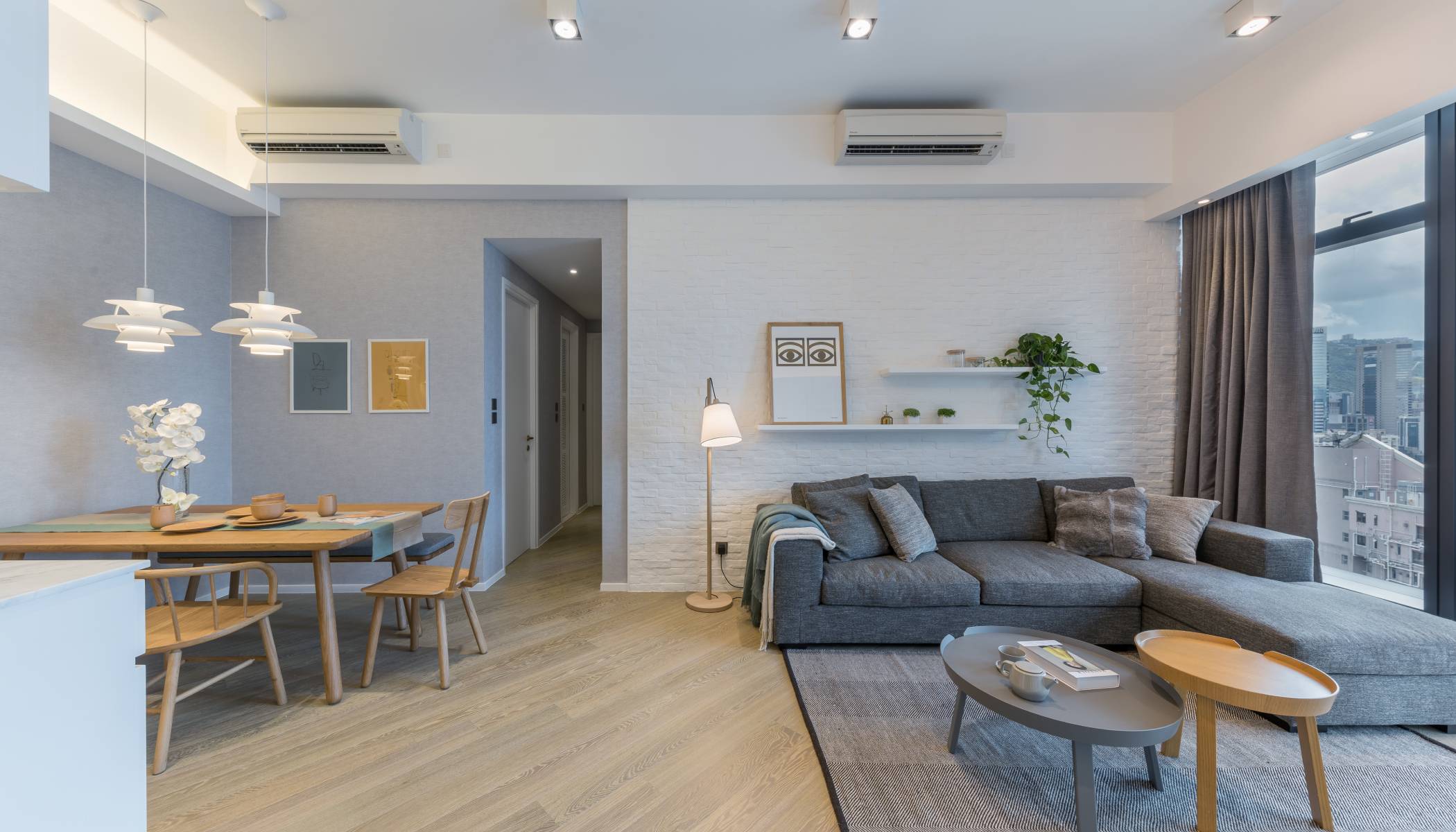 戶主選擇捨棄客廳擺放電視的傳統格式,設計師改以一組格仔櫃為客廳營造焦點。全屋刻意以白色為主調,並透過別致牆紙為不同小朋友房間增添個性。單位坐擁特高樓底,全屋透過訂製傢俱盡用樓高優勢。設計師又於主人房構建開放式衣帽間,為男女戶主細致劃分各自儲物空間。